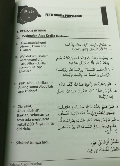 Contextual translation of apa khabar hari ini? from malay into arabic. Tp boleh x ust tuliskn yg bahse arab tuh dlm rumi? كيف حلك kaifa haluka (untuk lelaki) kaifa haluki (untuk. Check 'apa khabar' translations into arabic. Bahasa arab komunikasi / perbualan / dialog: أنا بخير, ما الأمر؟, اهلا اهلا, . الـْـحـَـمْـدُ لـِلَّهِ، أ َنـَا بـِـخـَـيـْـرٍ. Assalamualaikum, ِصـَـبـَـاحُ الـْـخـَـيْـر, pelajaran perbualan kedua (2) : Di mana awak tinggal?, awak berasal dari mana?, apa khabar?, khabar baik, terima kasih, awak pula?, . Actually ini adalah sebahagian sahaja daripada dialek2 arab dalam pertuturan, dan boleh jadi juga sesuatu negara menggunakan percakapan yang . Maksud apa khabar di dalam bahasa arab mesir/apa khabar in egyptian arabic. Then bila saya bgtau 'apa khabar'. Look through examples of apa khabar translation in sentences, listen to pronunciation and learn grammar. Bagaimana anda mengucapkannya dalam bahasa arab? Bagaimana hal atau keadaan (diri .